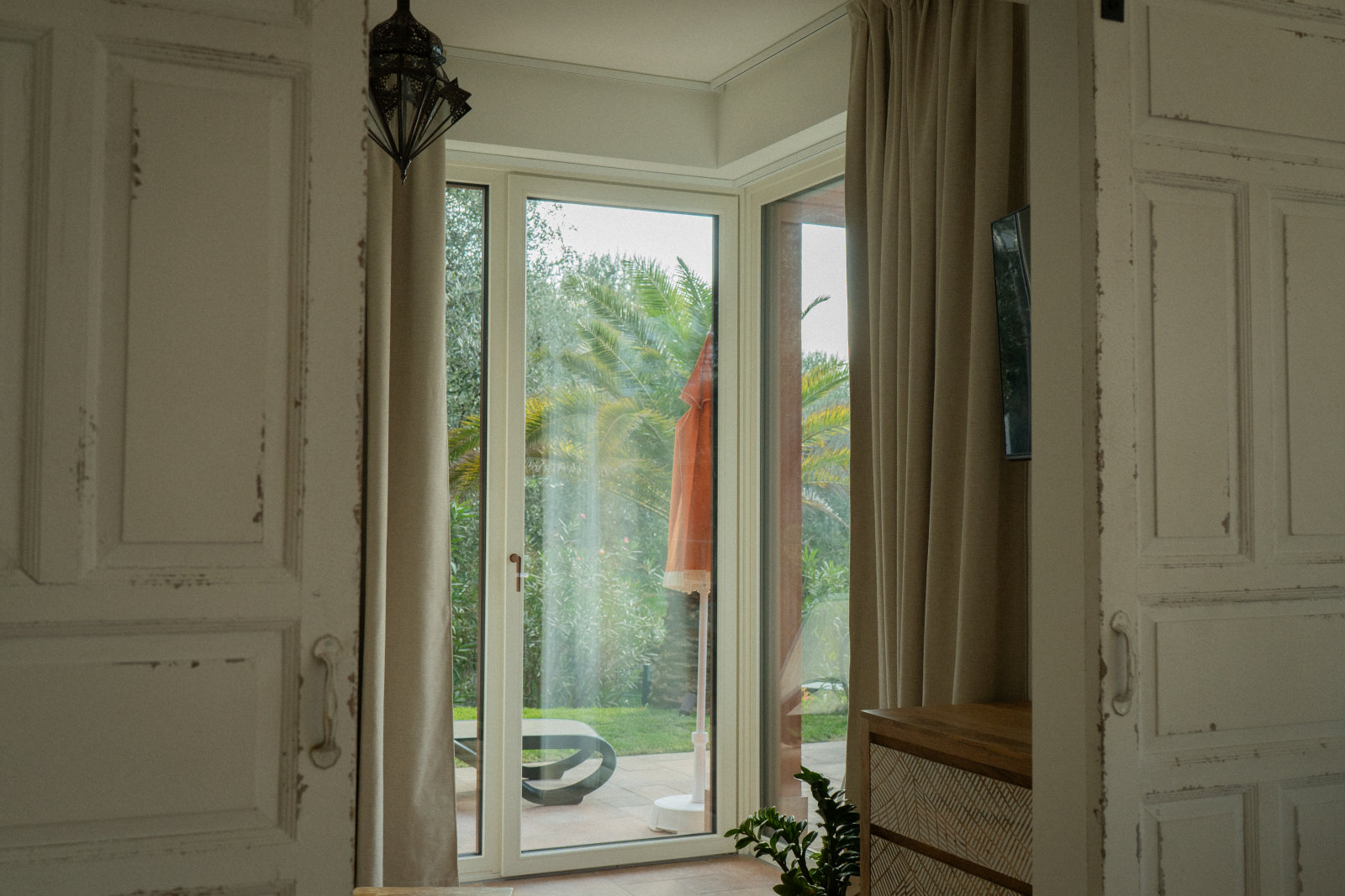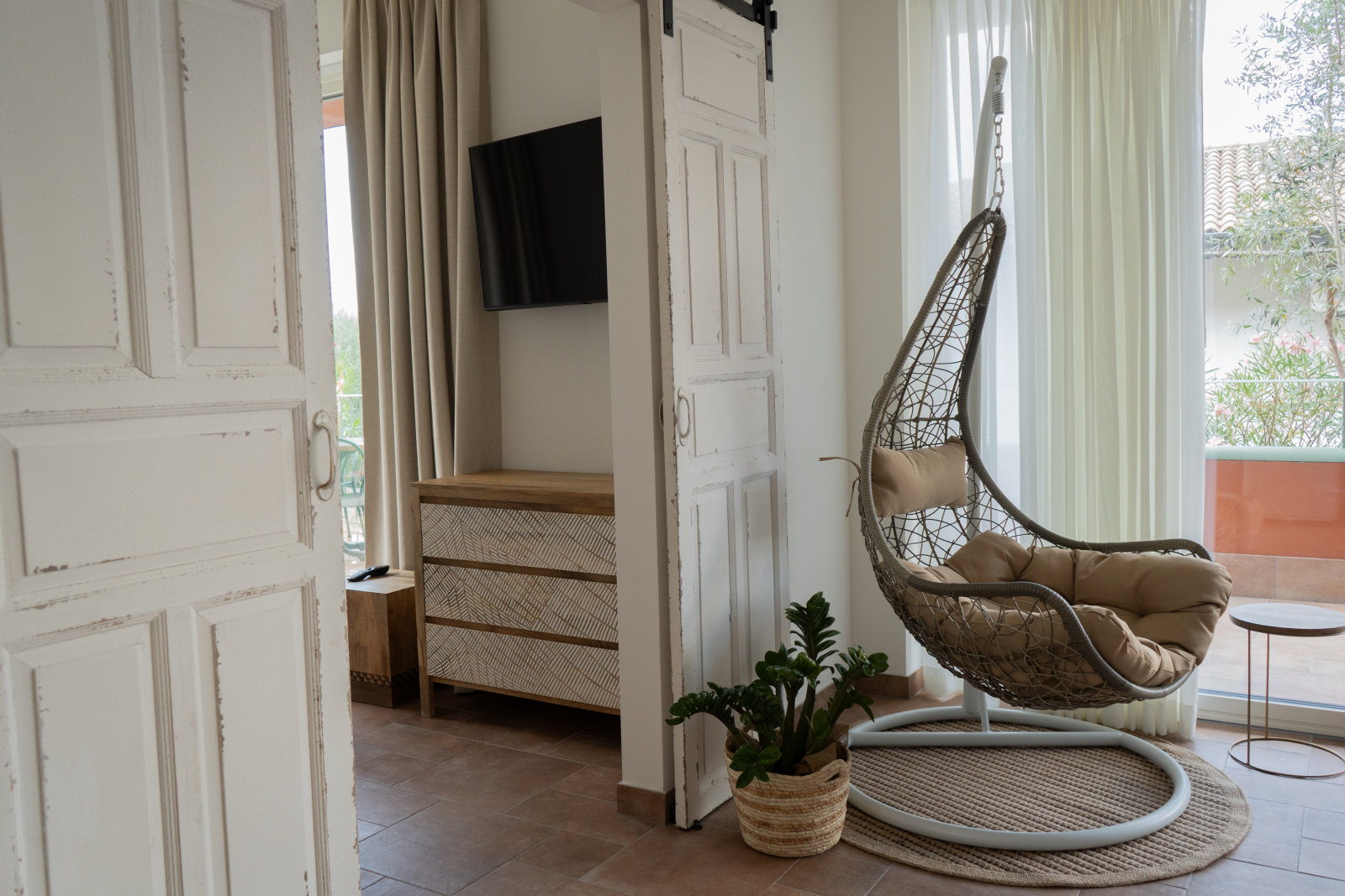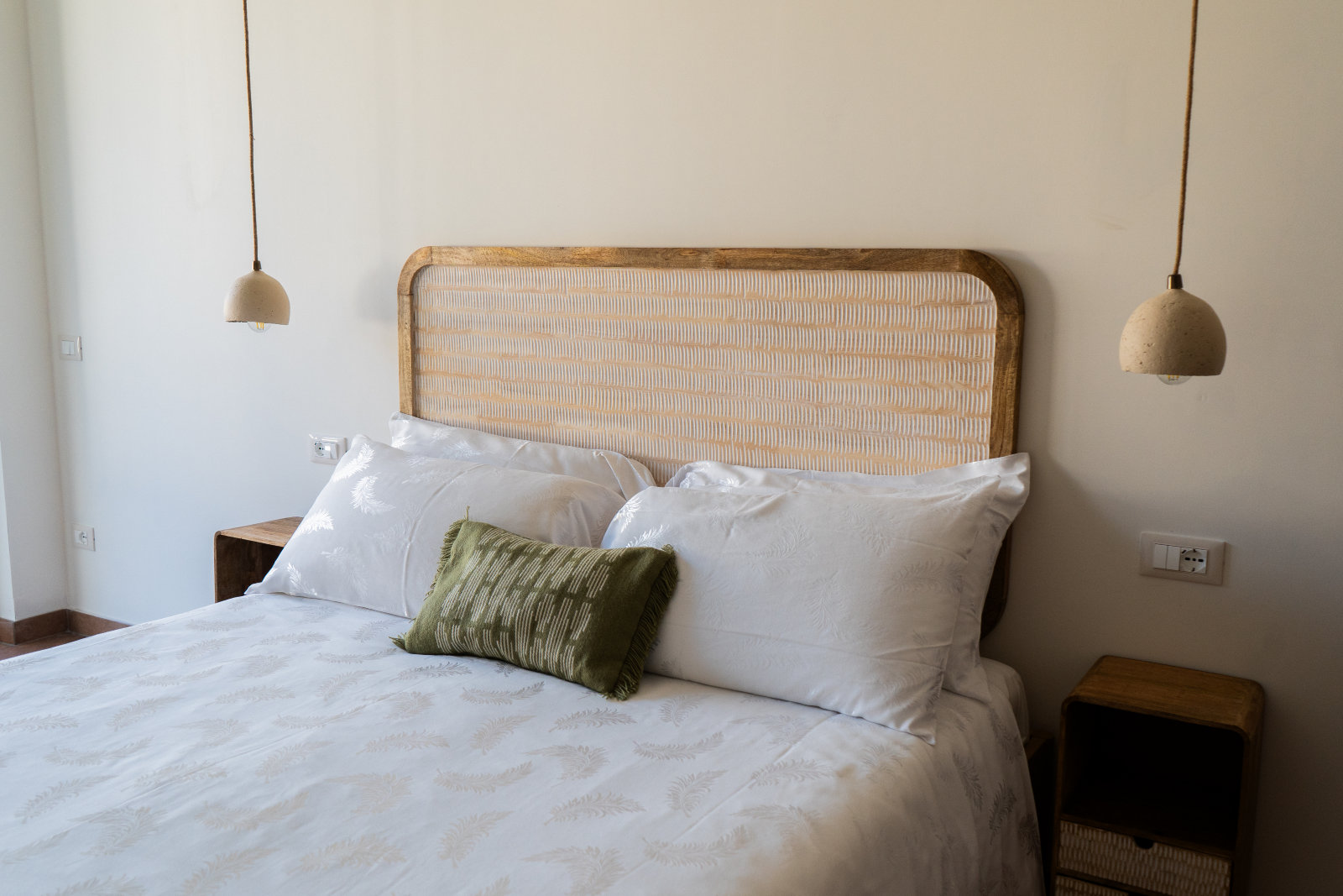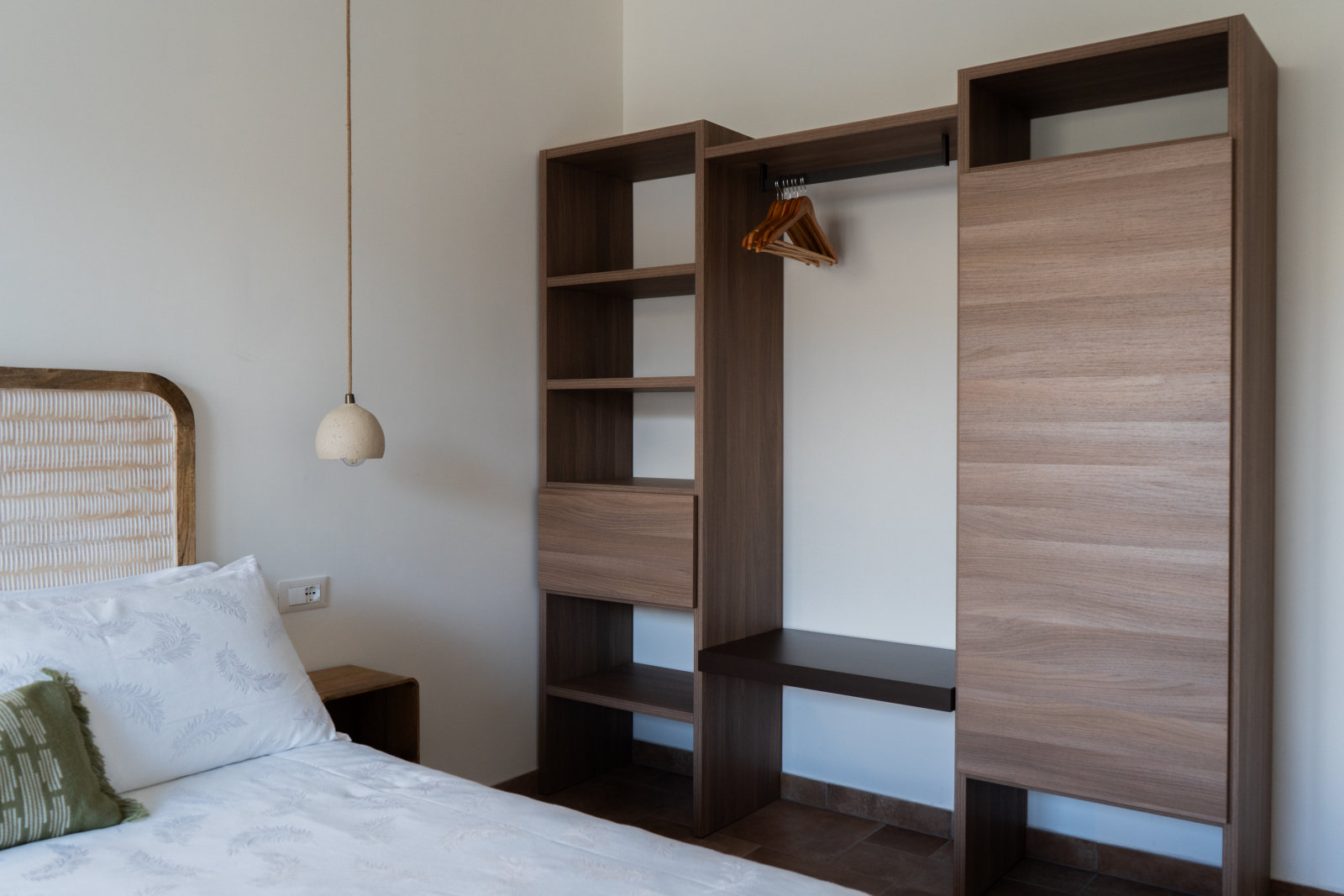 • 1 bedroom for two people with double bed (160x200), with lake view, air conditioning, duvets, two pillows per person, bed linen and open wardrobe with Safebox ideal for laptop.