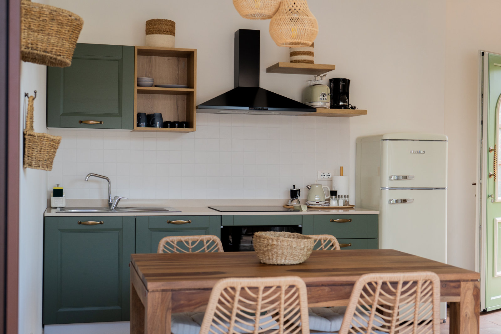 • A cozy kitchen equipped with air conditioning, 4 induction cooktop, dishwasher, kettle, toaster, microwave oven, American coffee machine, juicer and everything you need for cooking. And of course, glasses for wine.