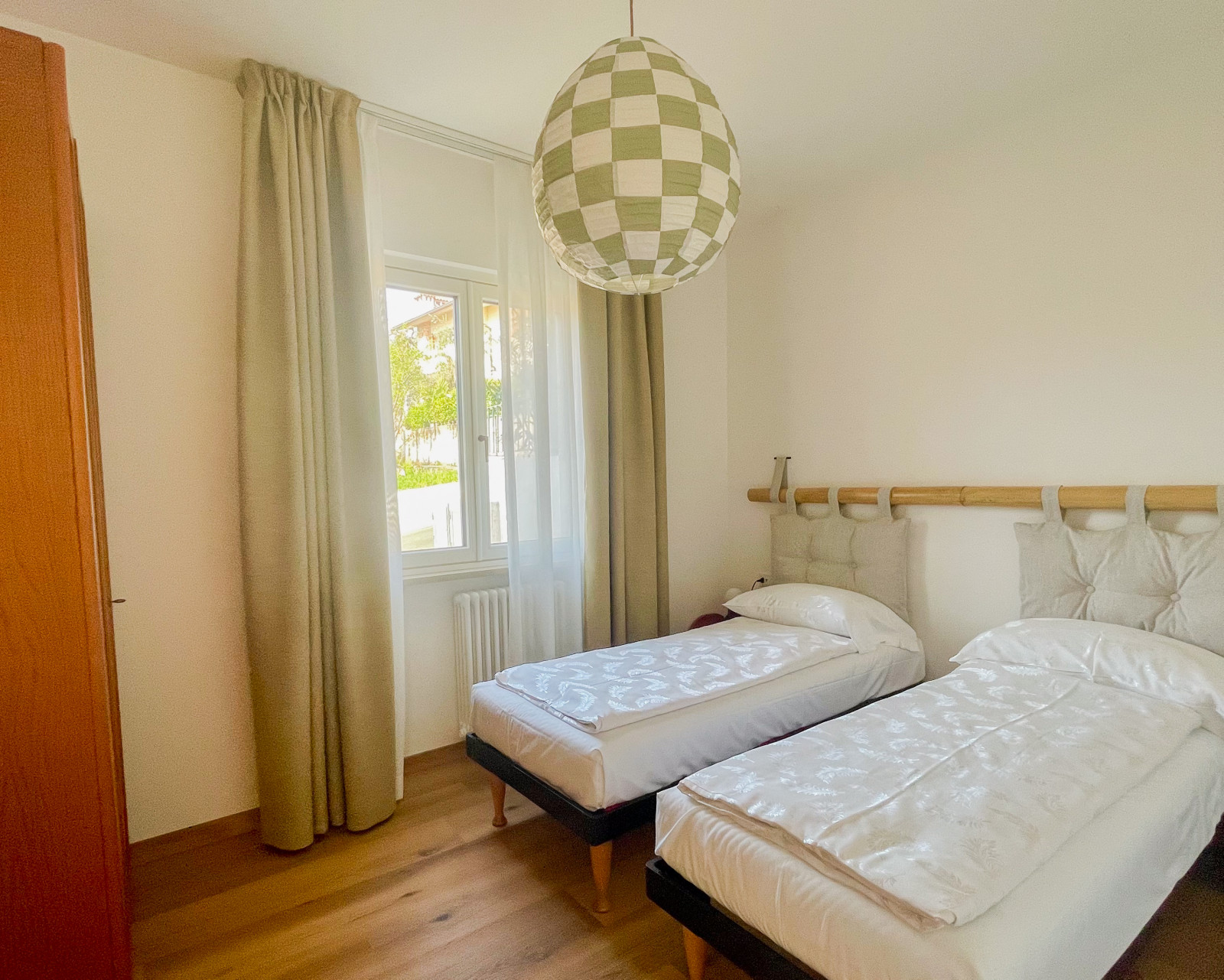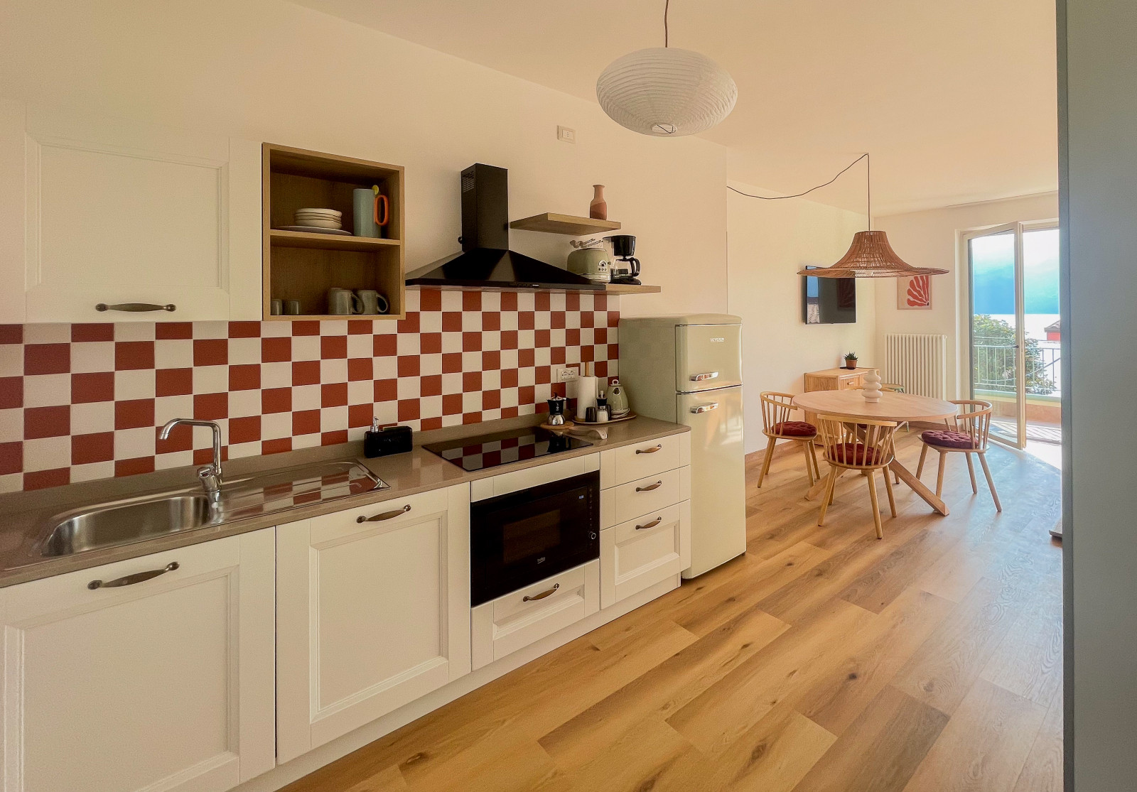 A welcoming ground‑floor apartment with an independent entrance, a spacious balcony overlooking the lake and a bright living area with a fully equipped kitchen. It includes two bedrooms, air conditioning and all essential comforts for a relaxing stay just a few steps from the water.